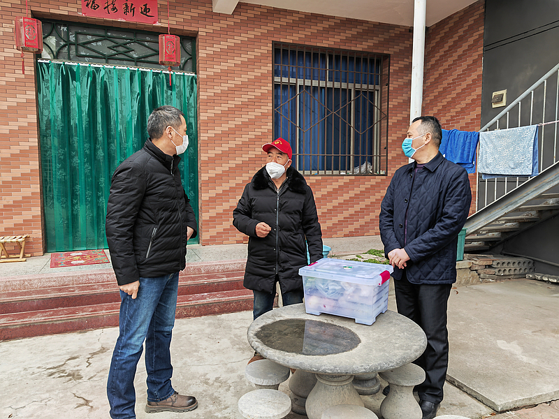 在大原村村委會門前,20余名黨員、團員集體看望慰問防疫工作者,隨后全體黨員、團員分兩組進村入戶,詢問了解群眾生活需求、年貨置辦情況,傾聽群眾所思所想所盼,解決群眾大事小事急事。