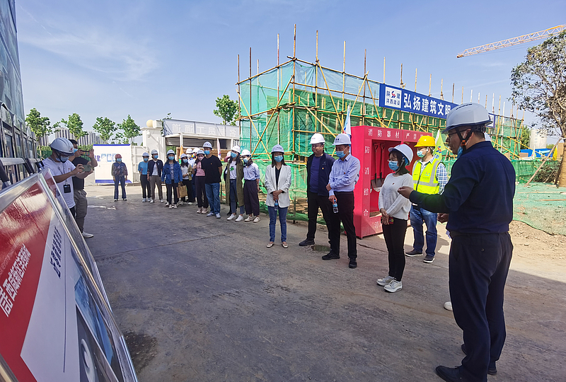 在絲路歡樂世界,講解員從文化共生、融合創新角度闡釋了項目的包容力與生命力,帶領大家深度領略絲路文化基因,感受項目發展動能。在灃河灃景路泵站管理用房項目,大家詳細了解了新型木紋清水混凝土工藝的應用成果,以及項目在打造近零碳建筑過程中的系列創新舉措。在實驗學校,全體人員參觀了灃西新城“最美圖書館”,通過智慧借閱系統選擇感興趣的圖書進行閱讀,共同感受濃厚的書香氛圍。