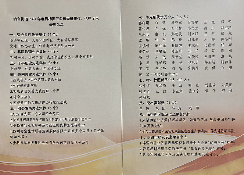 近日,灃西集團(tuán)子公司——陜西灃西服務(wù)發(fā)展有限公司(以下簡(jiǎn)稱“灃西服務(wù)”)北部回遷片區(qū)康定和園項(xiàng)目榮獲釣臺(tái)街道黨工委、釣臺(tái)街道辦事處頒發(fā)的2024年度目標(biāo)責(zé)任考核“服務(wù)發(fā)展先進(jìn)集體”榮譽(yù)稱號(hào),標(biāo)志著灃西服務(wù)在“紅色物業(yè)”黨建品牌建設(shè)與服務(wù)品質(zhì)提升方面實(shí)現(xiàn)了雙重突破為構(gòu)建和諧、文明的社區(qū)環(huán)境,貢獻(xiàn)了力量贏得了良好的社會(huì)聲譽(yù)和口碑?。