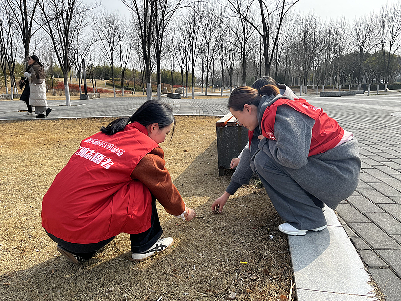 講解結(jié)束后,黨員干部以身作則、不怕臟、不怕累,仔細清理了灃柳路公園里草叢、衛(wèi)生死角等地的垃圾,并向路過的群眾進行宣傳教育,呼吁共同維護公園環(huán)境。