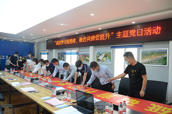 5月19日上午,灃西集團發(fā)展經(jīng)營部黨支部、市政工程項目管理部黨支部與中鐵二十一局集團路橋公司西咸片區(qū)項目部黨支部以“項目學習強黨建,融合共建促提升”為主題聯(lián)合開展黨日活動,三個支部二十余名黨員同志參與學習交流。