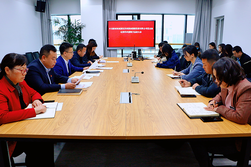 近日,能源公司黨支部召開紀(jì)律作風(fēng)整頓月總結(jié)大會(huì),全體在家班子成員及黨員參會(huì),董事長劉洪濤同志總結(jié)講話。
