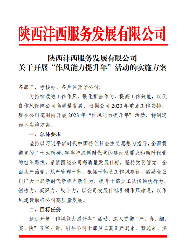 近期,灃西服務突出“嚴、真、細、實、快”特點,扎實推進“作風能力提升年”活動走深走實,進一步從嚴管理,激勵廣大干部員工在新時代展現新擔當新作為。