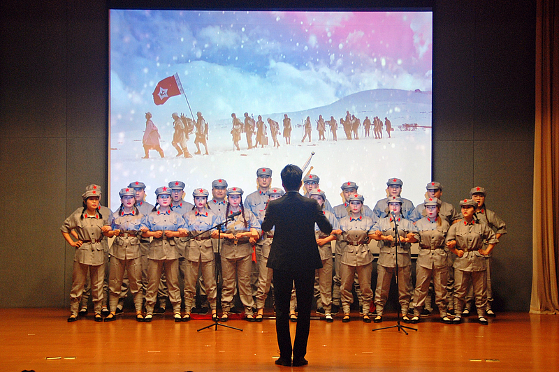 近兩個多小時10余個節目輪番上演,現場高潮迭起,精彩不斷。演員們以奮進的姿態、飽滿的熱情通過演唱、舞蹈、朗誦及相聲等多樣化的形式帶領大家回顧了黨苦難輝煌的艱辛歷程、崛起騰飛的發展之路及偉大復興的歷史進程,表達了對黨和祖國母親的熱愛,傳遞了堅定不移跟黨走的信念,凝聚起奮進新時代、啟航新征程的精神動力。