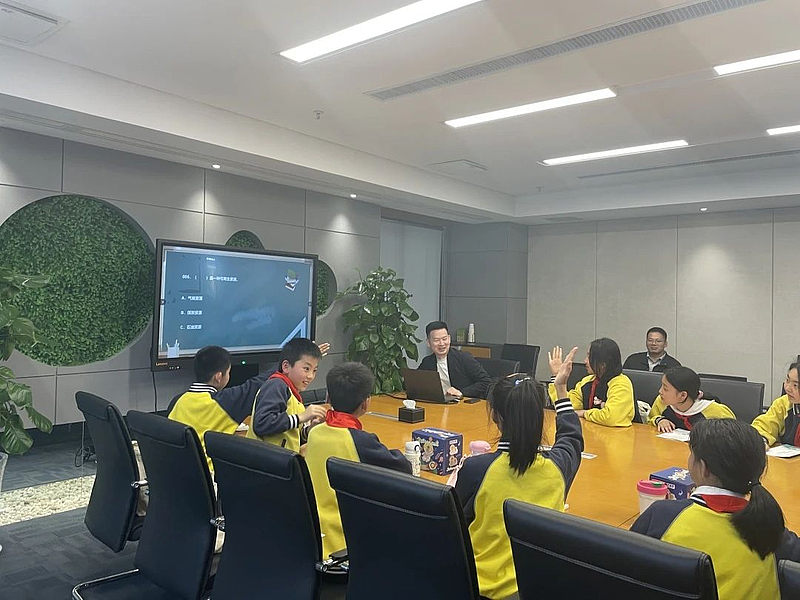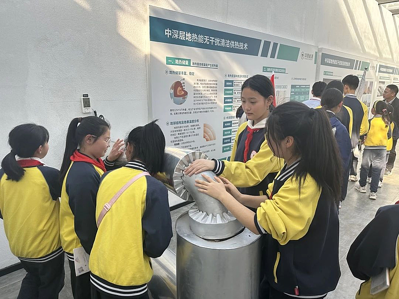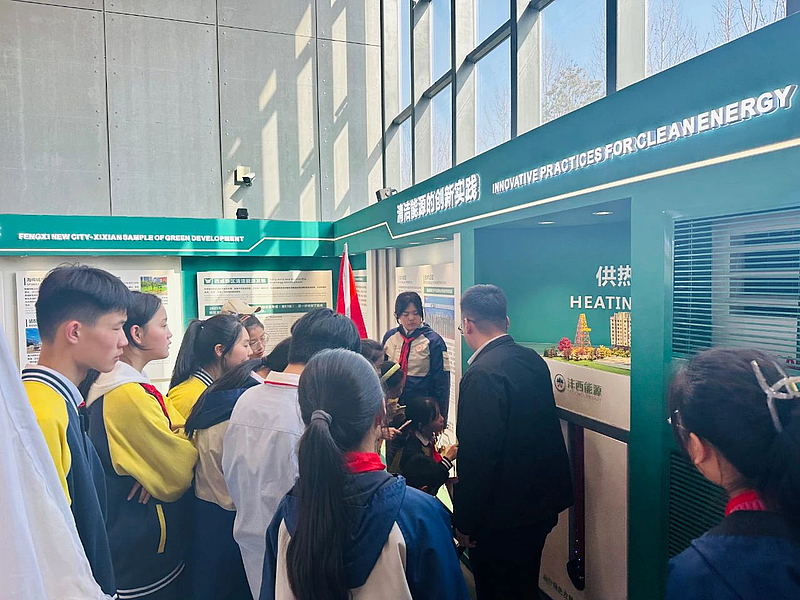 活動當(dāng)天,灃西新城第四學(xué)校師生們前往“西咸新區(qū)青少年教育基地”——灃西新城總部經(jīng)濟(jì)園綜合能源供應(yīng)站進(jìn)行參觀。在專業(yè)的講解員帶領(lǐng)下,深入了解中深層地?zé)崮軣o干擾清潔供熱技術(shù)特點、原理及優(yōu)勢。此外,講解員還結(jié)合實例,介紹清潔能源在保障城市運行、推動社會發(fā)展方面發(fā)揮的重要作用。為了讓同學(xué)們更加深入地了解中深層地?zé)崮軣o干擾清潔供熱技術(shù)原理,還特別設(shè)置了互動問答環(huán)節(jié),互動題目涵蓋了全球氣候變化、能源消費結(jié)構(gòu)、地?zé)崮芾梅绞郊爸攸c政策解讀等多個方面。同學(xué)們興趣高昂,踴躍參與,紛紛舉手競答,活動現(xiàn)場氣氛熱烈。