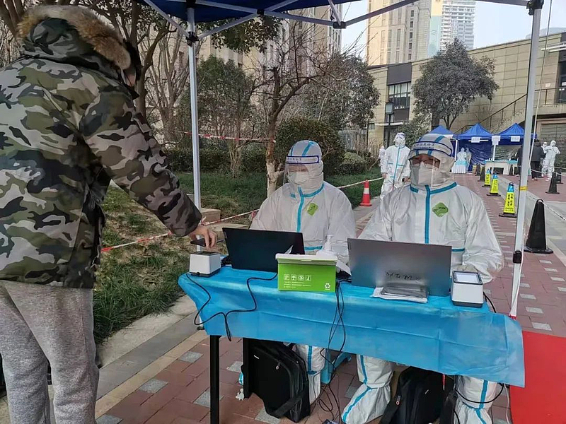 柴良革在新旺村幫助村民登記核酸檢測信息