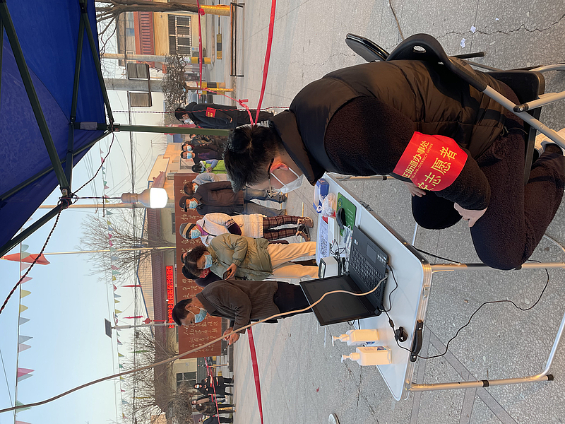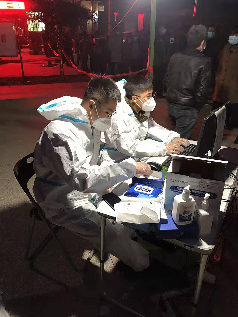 在馬王村核酸采樣點,一支平均年齡只有30歲的年輕團隊正有條不紊地協助著核酸采樣工作。為了保障身后群眾的生命健康安全,人力資源部全員聞令即動,鮮紅的黨旗下,共產黨員的初心使命在這樣的戰斗中得到了接力和傳承。