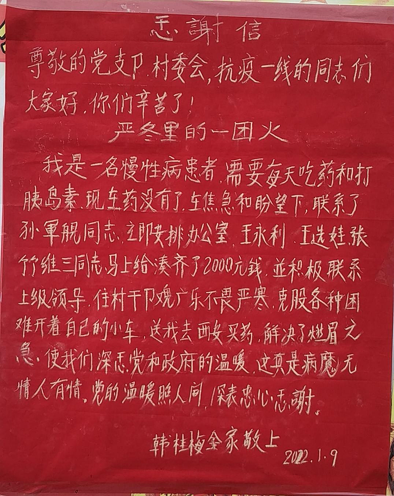 “還是我幫忙去醫院買藥吧,咱們也不能在這干著急呀!”韓桂梅老人行動不便,魏廣樂決定帶著熟悉老人病情的韓桂梅老伴去買藥,再叮囑家屬把身份證、需要購買的藥物清單、就診卡等攜帶齊全后,立即驅車前往西安交通大學第二附屬醫院。掛號、說明病情、拿藥……魏廣樂樓上樓下跑的滿頭大汗。忙了大半天,終于幫老人買到了所需的全部藥品,又幫忙辦理了慢性病報銷手續后,才帶著韓桂梅的老伴回到了村里。老人一直說著感謝的話,魏廣樂卻覺得這一切都是他應該做的,安頓好老人之后,他又投入到了緊張的疫情防控工作當中……