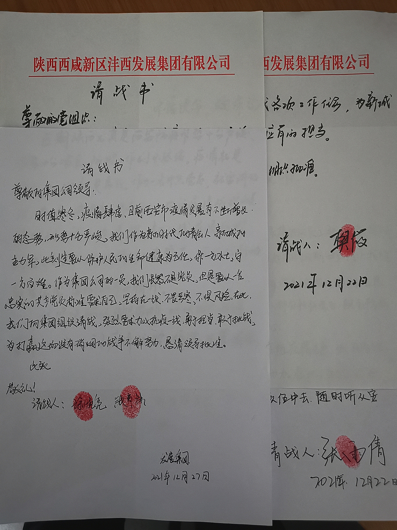 灃西發展集團黨員干部請戰書上錚錚誓言、鮮紅手印