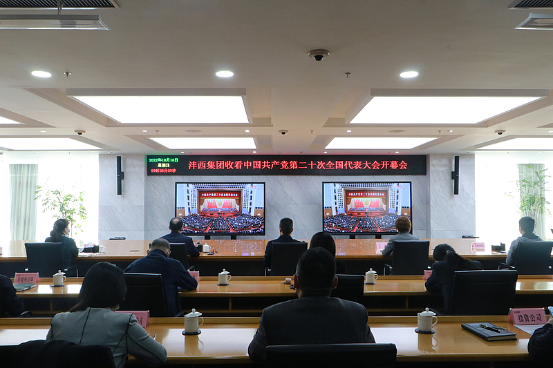 10月16日上午十時(shí),中國(guó)共產(chǎn)黨第二十次全國(guó)代表大會(huì)在北京人民大會(huì)堂開幕,灃西集團(tuán)組織干部員工收聽收看黨的二十大開幕會(huì)直播盛況,集團(tuán)在家領(lǐng)導(dǎo)班子成員,各部門、各子公司主要負(fù)責(zé)人參加集中收看,其余員工通過電視、網(wǎng)絡(luò)等渠道收聽收看。