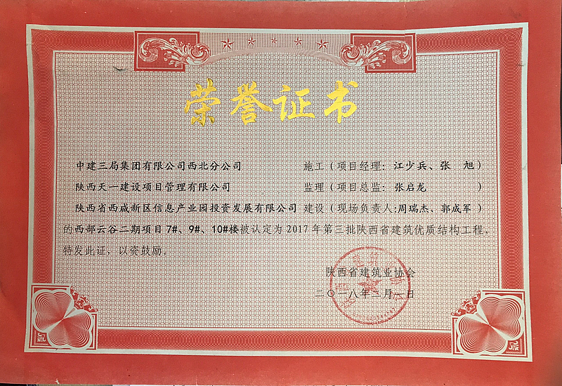 西部云谷二期項目榮獲陜西省建筑優質結構工程