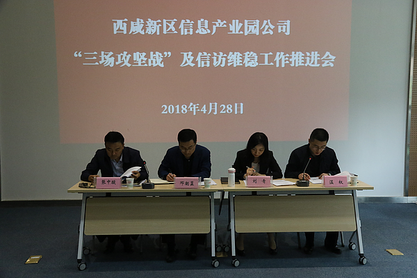 4月28日下午,信息產業園公司召開“三場攻堅戰”及信訪維穩工作推進會。公司全體干部員工參加會議。