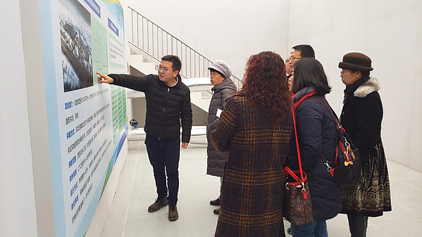 調(diào)研組一行在參觀了西部交大創(chuàng)新港、大數(shù)據(jù)中心后,來到總部經(jīng)濟園綜合能源站項目,詳細了解了無干擾地?zé)峁峒夹g(shù)在灃西新城的應(yīng)用情況及節(jié)能減排的作用,學(xué)習(xí)了無干擾地?zé)峁岬募夹g(shù)原理和技術(shù)優(yōu)勢。隨后參觀了同德佳苑中深層地?zé)崮軣o干擾清潔供熱示范項目。能源公司相關(guān)同志介紹了該技術(shù)在新城的應(yīng)用情況、技術(shù)原理與優(yōu)勢、節(jié)能減排作用等方面。