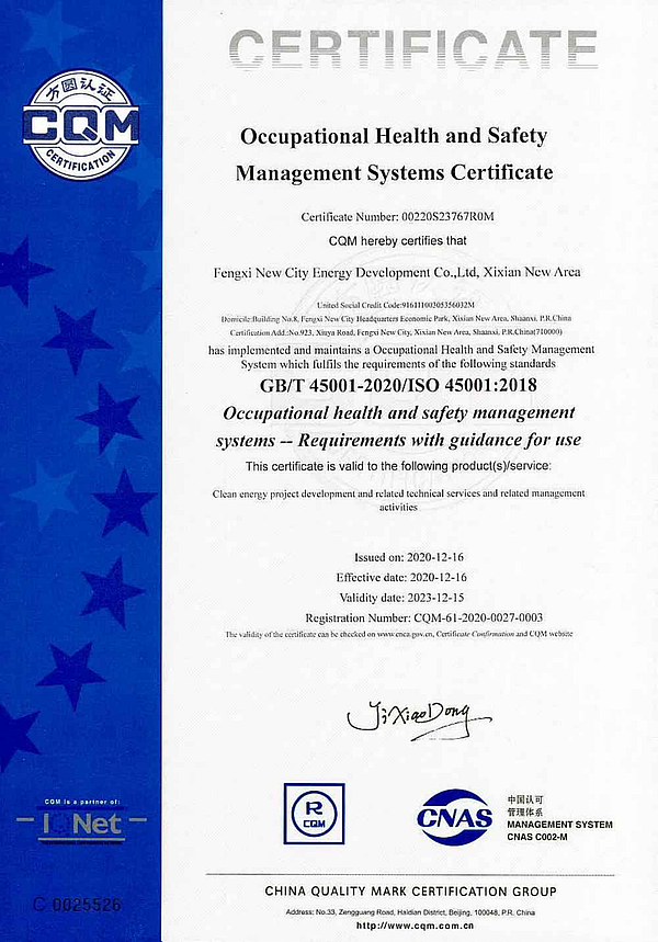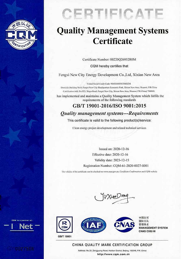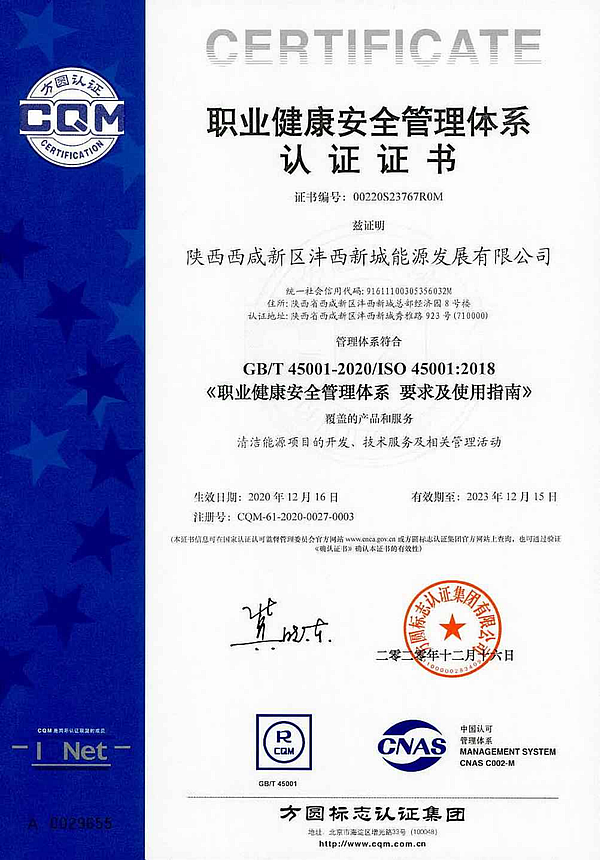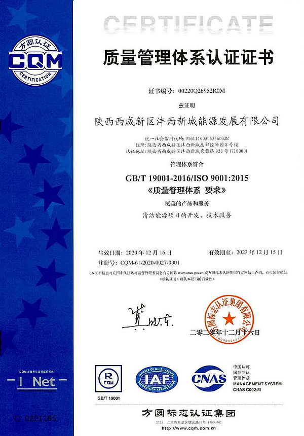 近日,灃西新城能源公司順利通過方圓標(biāo)志認(rèn)證集團(tuán)有限公司審核專家組QES(質(zhì)量、環(huán)境和職業(yè)健康安全管理體系)初次認(rèn)證審核,并于12月16日順利獲得了QES管理體系認(rèn)證證書,為推進(jìn)公司規(guī)范化建設(shè),提升管理水平,增強(qiáng)企業(yè)競爭力,奠定了良好基礎(chǔ)。