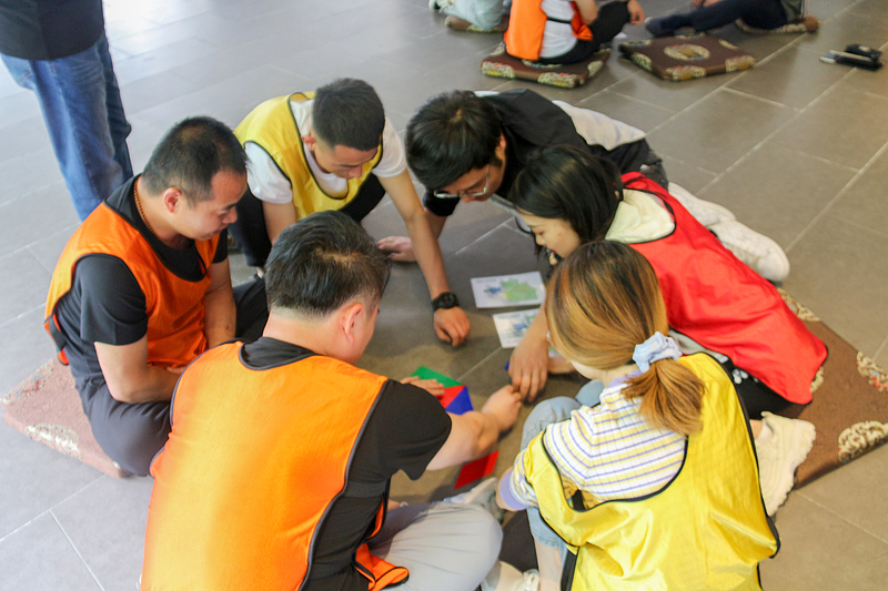 活動開始后,現場立馬熱火朝天,一片沸騰,緊張又高難度的任務激發了全體人員的勇氣、信念和謀略,也讓大家深刻體會到團隊合作的關鍵性、分工有序的高效性和積極溝通的重要性,增加了團隊的協作力、向心力和凝聚力。