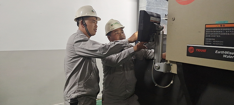 各項(xiàng)目負(fù)責(zé)人帶領(lǐng)值班人員對(duì)供冷系統(tǒng)全方位檢查,對(duì)冷機(jī)、循環(huán)水泵、冷卻塔、風(fēng)機(jī)等設(shè)備進(jìn)行巡查檢修,確保設(shè)備安全、穩(wěn)定、高效運(yùn)行。客服人員對(duì)所有用冷單位進(jìn)行全面走訪。他們頂著炎炎烈日,冒著高溫酷暑,從總部經(jīng)濟(jì)園到陜中二附院,從三一筑工到交大創(chuàng)新港,到處都能見到他們的身影。他們深入現(xiàn)場(chǎng)了解客戶的需求,在走訪過程中遇到戶內(nèi)溫度不適、管道堵塞等問題,第一時(shí)間聯(lián)系維修人員上門處理,積極為客戶解決用冷的各種問題,讓客戶真切感受到貼心的服務(wù),不斷踐行“我為群眾辦實(shí)事”的宗旨。