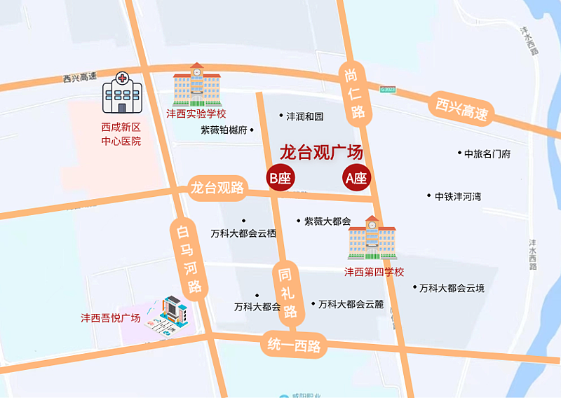 龍臺觀廣場商鋪位于灃西新城龍臺觀路與同禮路十字東北角、龍臺觀路與尚仁路十字西北角,為A、B兩座商業(yè)樓體,由地上五層和地下停車場組成,總建筑面積約32788m2,商鋪面積為107㎡--3115㎡不等,可根據(jù)商戶業(yè)態(tài)自由選擇。