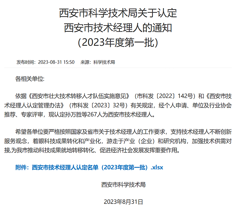 近日,西安市科學技術局向2023年度第一批西安市技術經理人頒發證書,灃西集團陜西微軟創新中心有限公司(以下簡稱“陜西MIC”)、陜西灃西科創發展有限公司(以下簡稱“灃西科創”)11人獲得認定。