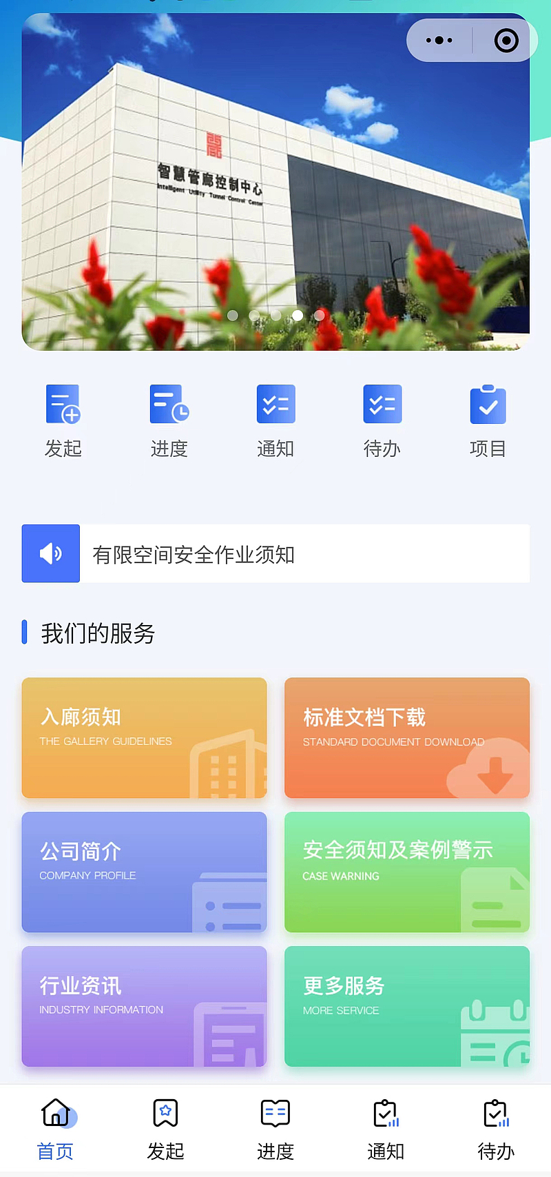 隨著新城經(jīng)濟(jì)快速發(fā)展,越來(lái)越多企業(yè)落戶灃西,為了向企業(yè)提供更便利的服務(wù),提高入廊效率,規(guī)范有限空間作業(yè)流程,管廊公司以信息化為手段,根據(jù)實(shí)際需求建立了一套完整的線上業(yè)務(wù)辦理流程,推出“西咸新區(qū)鴻通管廊”入廊小程序。