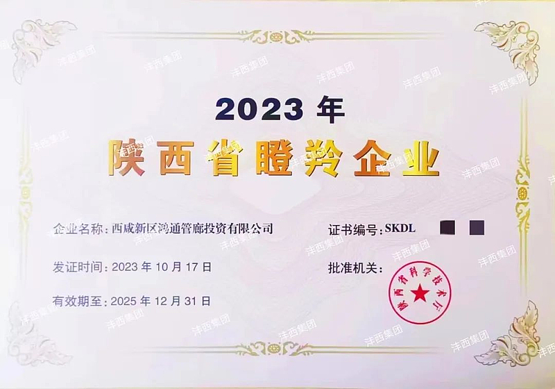 近日,陜西省科學(xué)技術(shù)廳公布2023年陜西省瞪羚企業(yè)名單,灃西集團投資公司全資子公司—西咸新區(qū)鴻通管廊投資有限公司(以下簡稱“管廊公司”)光榮上榜!