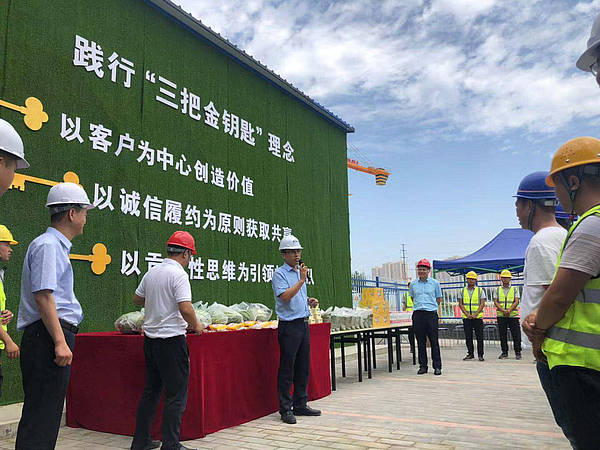 7月31日,置業(yè)公司開展2019年夏季安全演練暨“送清涼 促生產(chǎn)”活動,為奮戰(zhàn)在高溫一線的施工人員送去西瓜、綠豆、白糖、藿香正氣水等防暑降溫慰問品。新城規(guī)劃建設(shè)局副局長呂健、集團公司紀(jì)委書記尚海峰、置業(yè)公司董事長葛上義以及施工及監(jiān)理單位主要負(fù)責(zé)同志參加本次活動。