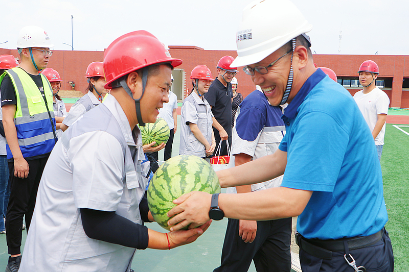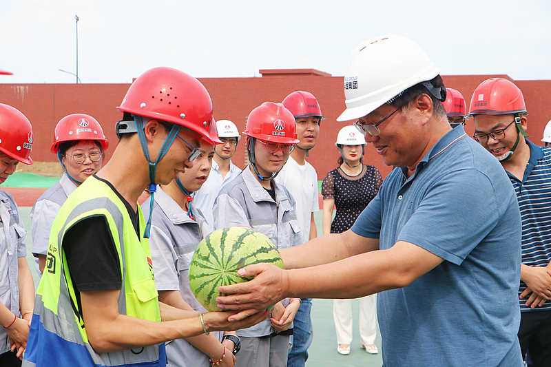 隨后,楊建柱一行將精心準備的涼茶、西瓜、冰袖等防暑降溫物資送到堅守在開發(fā)建設(shè)和管理一線的勞動者們手中,對大家在高溫天的持續(xù)堅守和辛勤勞動表示感謝。