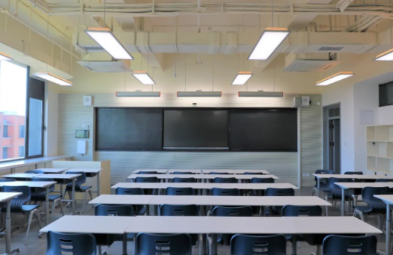 音效保障為保證老師講課效果并避免聲音擴散,在前后墻面采用吸音板并內填吸音棉,以保證吸音效果。同時,教室安置聲麥設施,有效提升老師、學生音量,確保教學過程中老師與學生之間的有效溝通。